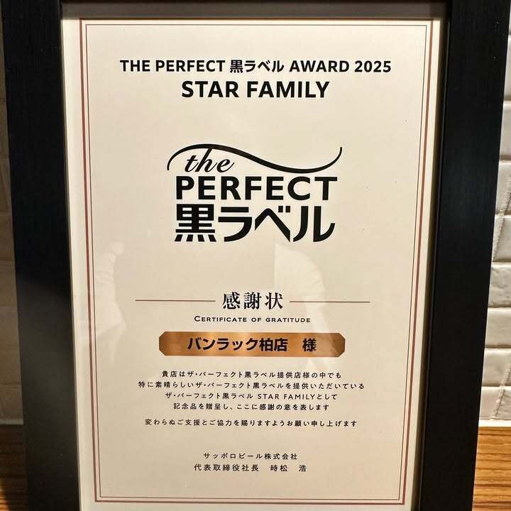 パーフェクト黒ラベルを提供しているお店だけがこの称号をいただけるAWARD