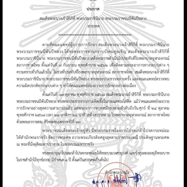 สมเด็จพระนางเจ้าสิริกิติ์ พระบรมราชินีนาถ พระบรมราชชนนีพันปีหลวง สวรรคต